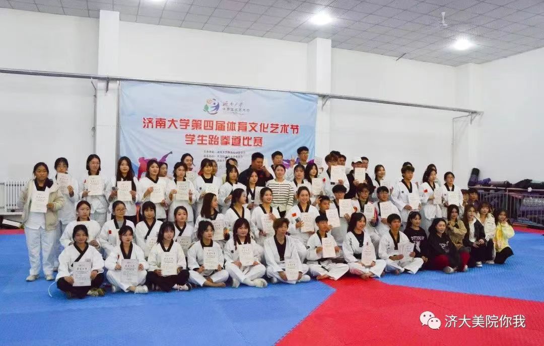 刻苦训练,赛出美院锋芒。在近一个月的备赛时间内,体育部对武术队和舞蹈队进行整合,逐步推进跆拳道基础招式训练,通过层层选拔,最终选出21人分为两支队伍参加比赛。
