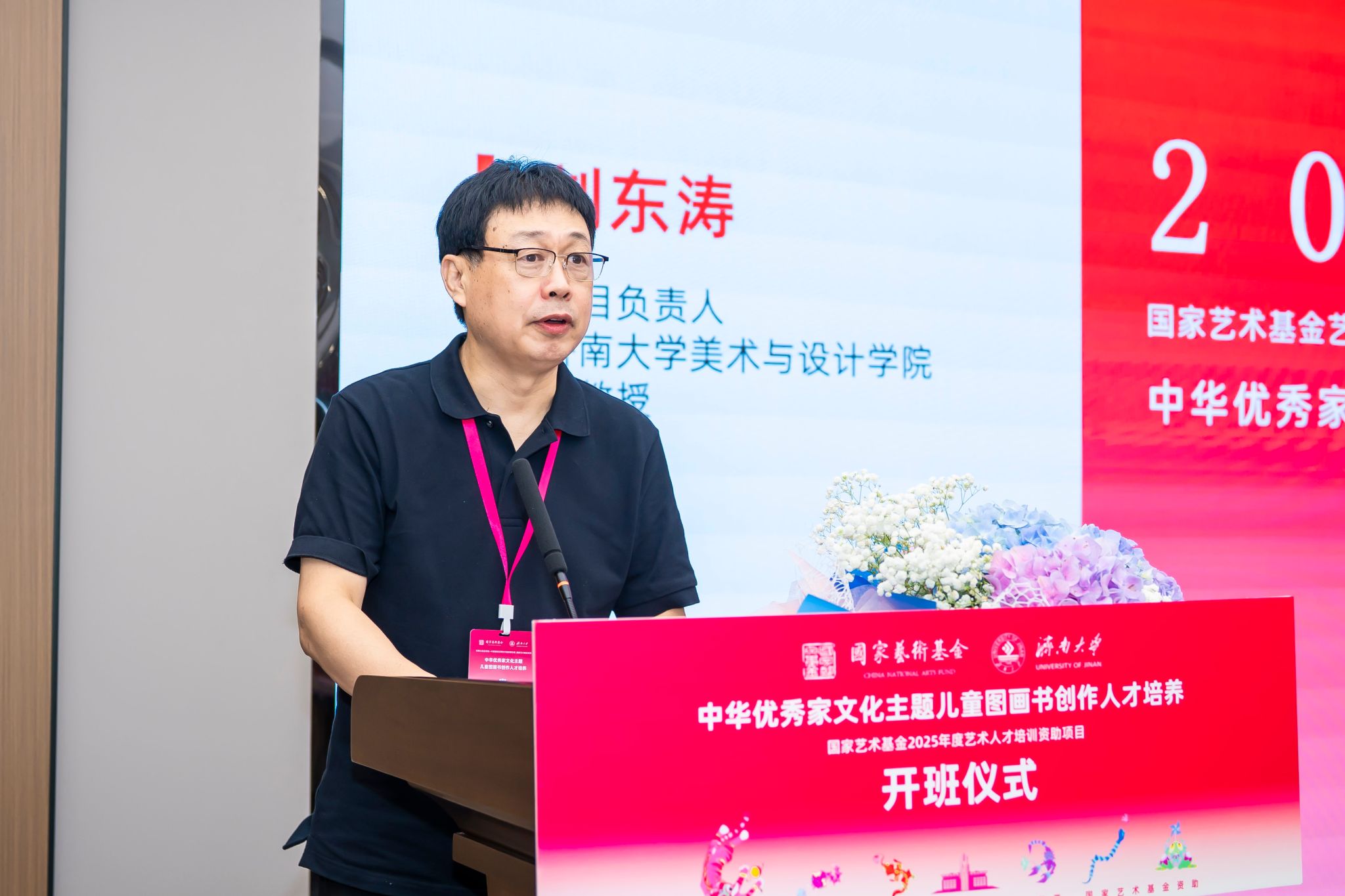 项目负责人刘东涛在发言中系统介绍了项目实施规划:本次培训通过全国范围内的专业筛选,最终吸纳30位来自插画创作、儿童文学、出版传媒等领域的学员。课程体系包括家文化专题讲座、图画书出版实践、图画书主题创作理论、图画书主题创作实践、调研考察五个模块,助力创作者实现家文化与图画书表达的深度融合。