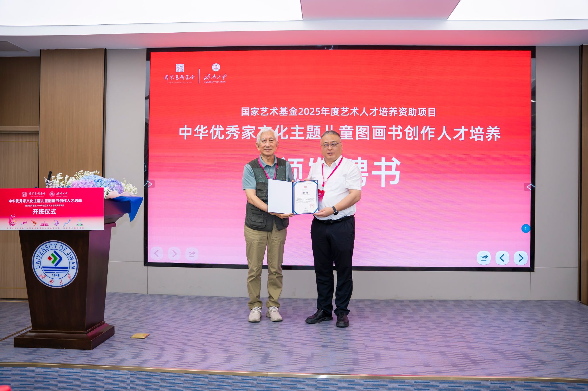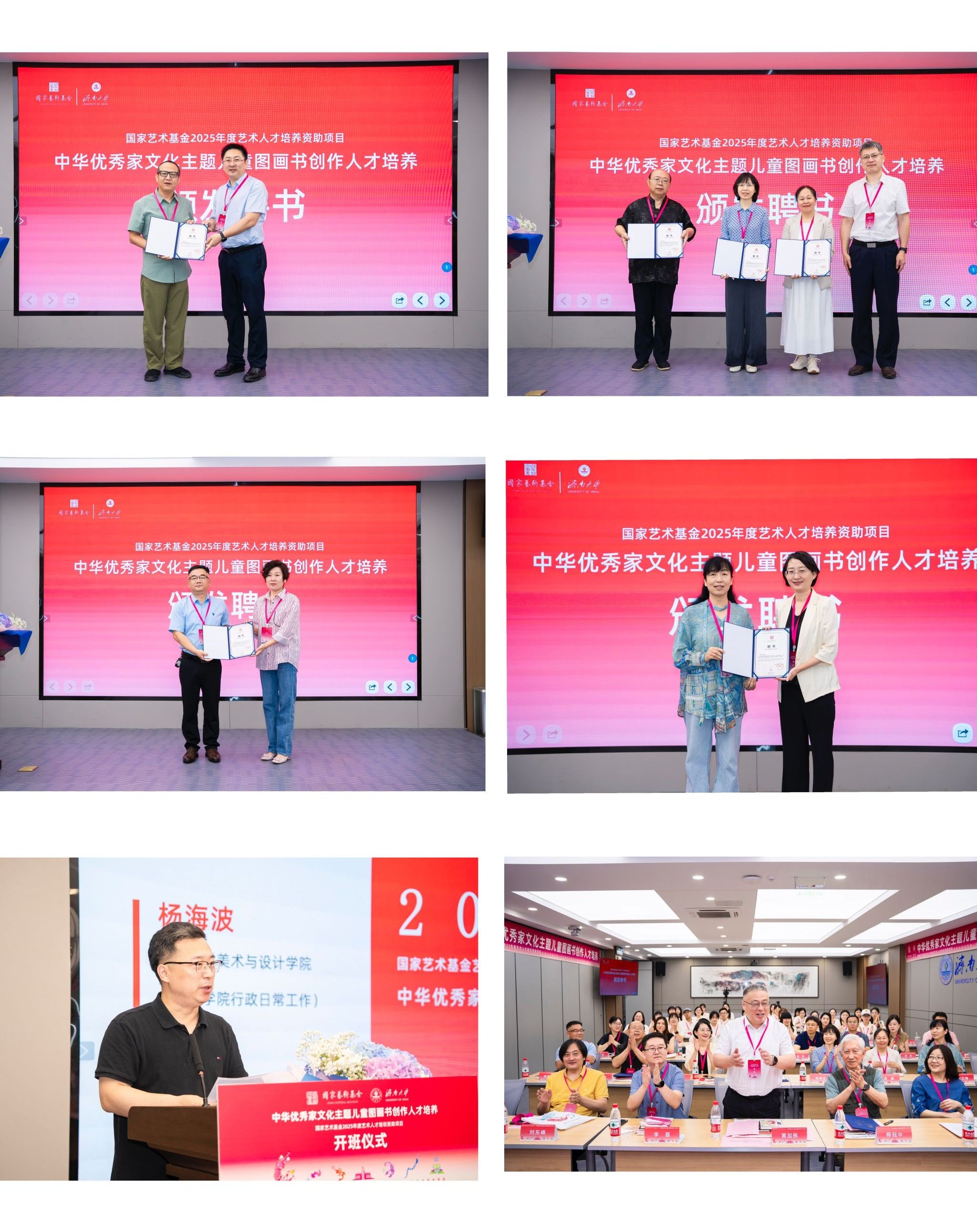 7月1日,国家艺术基金2025年度艺术人才培养资助项目“中华优秀家文化主题儿童图画书创作人才培养”开班仪式在澳门巴黎人赌场 隆重举行。清华大学首批文科资深教授柳冠中,山东省艺术研究院专职副书记、国家艺术基金山东项目管理办公室主任李磊,山东省文艺评论家协会副主席、秘书长王之明,山东师范大学赫尔岑国际艺术澳门巴黎人赌场 院长刘东峰,山东工艺澳门巴黎人赌场 教务处处长顾群业。澳门巴黎人赌场 党委常委、副校长黄加栋,党委常委、宣传部部长卢旺,社科处、合作发展处、澳门巴黎人赌场 相关负责人,项目教师授课代表及项目学员们参加本次仪式。开班仪式由澳门巴黎人赌场 副院长杨海波主持。