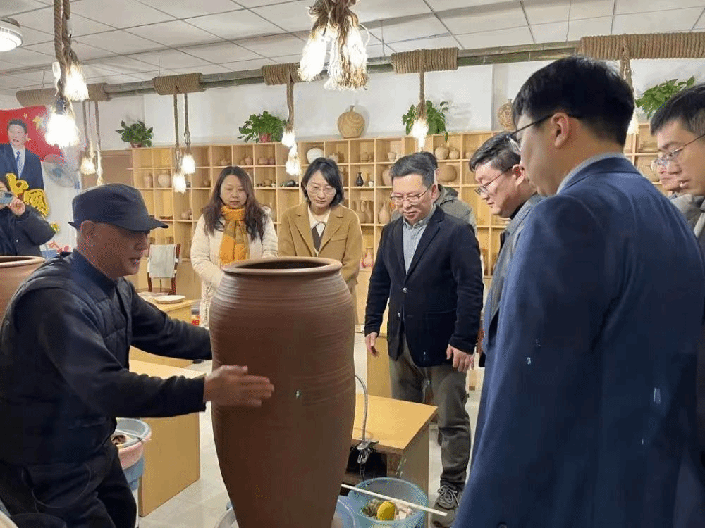 一行参观了张家庄村党群服务中心,深入陶器制作现场,实地查看了制作流程,与手工艺人进行了交流。