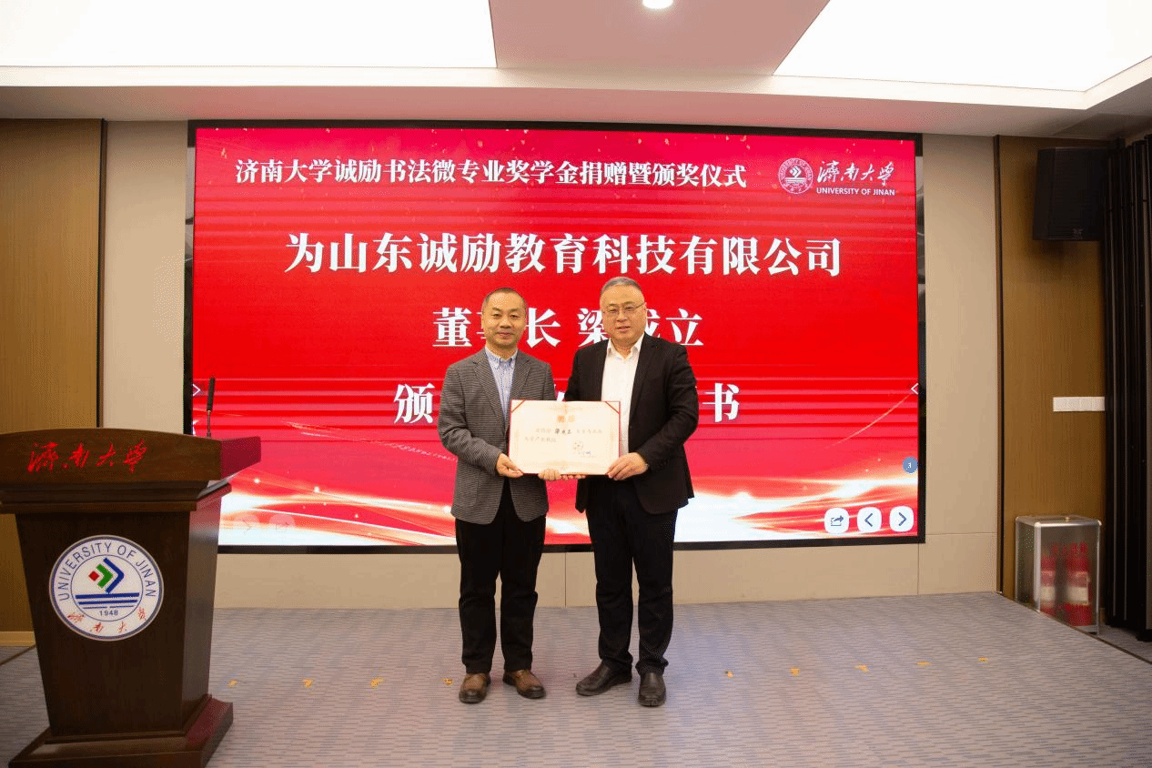 山东诚励教育科技有限公司捐赠二十万元设立澳门巴黎人赌场 诚励书法微专业奖学金,旨在推动澳门巴黎人赌场 书法微专业建设。其旗下诚励书画教育品牌,创立于2003年。它是经教育部门核准的大型综合书画教育连锁培训机构。现有一百余位专职教师,在济南有十四所直属校区,常年在校生一万余人,业务涵盖少儿书法培训、少儿美术培训、书画教材出版等领域。