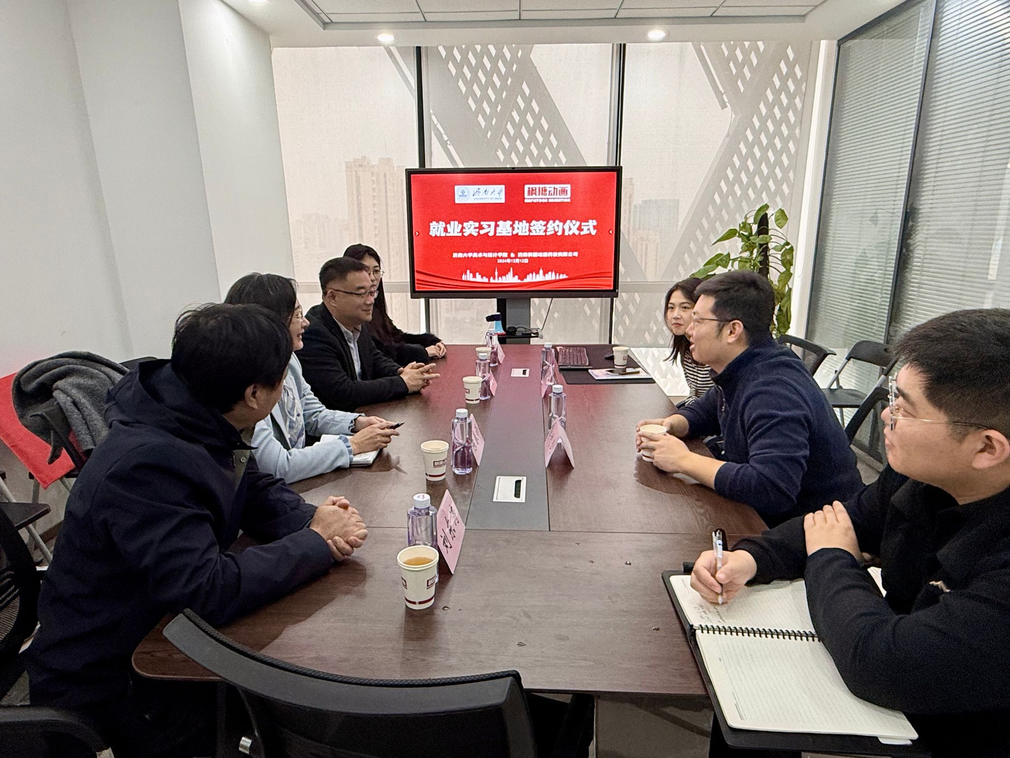 一行赴济南枫糖动漫科技有限公司开展访企拓岗暨产学研合作交流活动。济南枫糖动漫科技有限公司经理李利剑、动画制片人黄欣婷及相关部门负责人,澳门巴黎人赌场