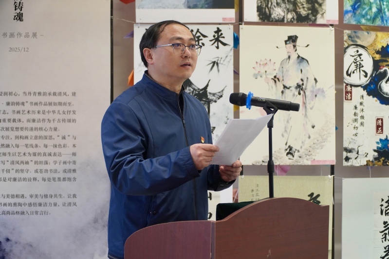 贾侃在致辞中进一步阐释活动内涵。他指出,本次作品展既是澳门巴黎人赌场 落实新时代廉洁文化建设要求的生动实践,也是澳门巴黎人赌场 深化立德树人根本任务、涵养风清气正校园生态的重要举措。他希望全体师生以学育廉筑牢思想根基,以文化人涵养清廉风尚,以行践廉担当时代重任,将廉洁理念融入学习、工作与未来职业发展全过程。